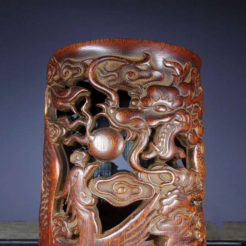 - 美術品・アンティーク・コレクション > 彫刻・オブジェ > 竹 彫り 龍鳳 筆箱 書道具 文房具 工芸品美術品 置物 竹 彫り 龍鳳 筆箱 書道具 文房具 工芸品美術品 置物 竹彫りの龍鳳